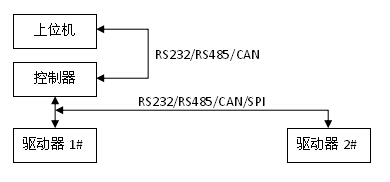 扩展应用: 本应用的特点是两个驱动器之间通过RS232/RS485/CAN/SPI总线联网利用PVT/PT控制模式实现两轴插补联动,可以利用此特点将其扩展到其它AGV相关应用。