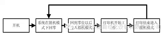 系统上电,驱动器默认为脱机模式,首先进行回零点操作,然后将驱动器切换到联机模式,开始打印。打印结束,系统将自动切换到脱机模式,如果要继续打印,可以直接回零点,进行下一轮打印。