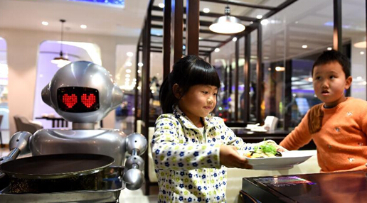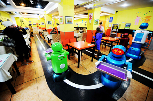 2014年12月,安徽合肥市首家机器人主题餐厅开门迎客,机器人“大厨”和“跑堂”为顾客提供烧菜、送餐等服务,吸引众多顾客前来“尝鲜”。