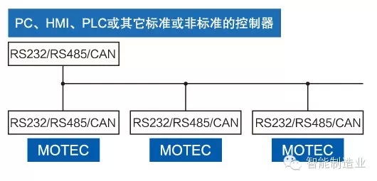 MOTEC β驱动器支持USB、RS232、RS485、CAN四种通讯方式,除了USB通讯,另外三种通讯方式都可以组成多个节点的运动控制网络。对于RS232,由于采用了创新的设计,它也可以支持组建多个节点的运动控制网络。