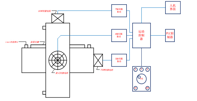 机构运动部分由精密直线位移平台,交流伺服电机,盘式伺服电机,直线光栅,伺服驱动器 及极限保护传感器组成。