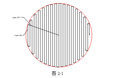 图2-1因芯片尺寸为4英寸,设定程序外圆为4.3英寸(110mm),工作台由中心移动至外 圆时,激光R-shutter关闭,由外圆开始切割时,激光R-shutter开启。